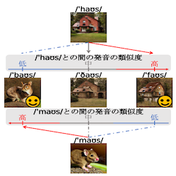 テキストから画像を生成するモデルが近年急速に発展する一方で,定義が存在しない語(未知語)に対する生成画像が人間の直感と合致しないという問題点はあまり着目されてこなかった.未知語に対する生成画像が人間の直感と相違する原因として,人間が未知語の発音から直感的に意味や印象を想像,またその類音語を連想する心理学的現象がある.そこで本発表では,類音語の連想性を考慮した未知語―画像間の対応付けを行なうことで,未知語に対するより直感的な画像生成を実現する.主観評価実験により,提案手法がテキストから画像を生成する既存手法と比べ,未知語に対してより人間の直感に合致した画像を生成することを確認した.また,提案手法を多言語へ拡張しその画像生成結果を比較することで,他言語間で類似/相違した概念を連想する発音の探索を試みた.